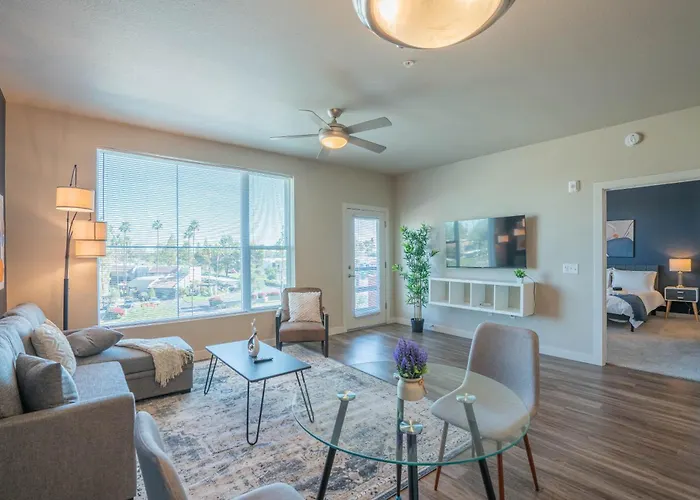 El Spacious 1Bd - Balcony, Pool, Gym, W-D - Sleeps 4 se encuentra a una distancia de 3 km del Estadio Sun Devil, ofreciendo acceso a numerosos lugares de interés de la zona. Además, diversas actividades deportivas, como clases de fitness, permiten a los huéspedes mantener su rutina de ejercicios.